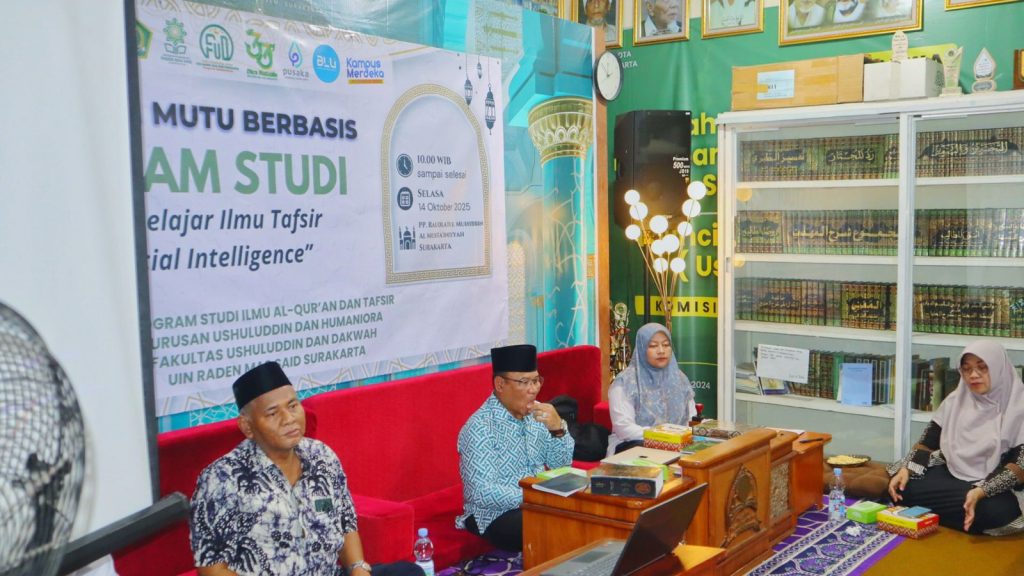 Surakarta, 14 Oktober 2025 — Fakultas Ushuluddin dan Dakwah Universitas Islam Negeri (UIN) Raden Mas Said Surakarta menyelenggarakan kegiatan Penguatan Mutu Akademik Berbasis Program Studi Ilmu Al-Qur’an dan Tafsir di Pondok Pesantren Raudlatul Muhibbin Al Mustainiyyah Surakarta. Kegiatan yang berlangsung pada Selasa, 14 Oktober 2025, pukul 10.00–12.00 WIB ini menghadirkan sejumlah dosen dari UIN Raden…
